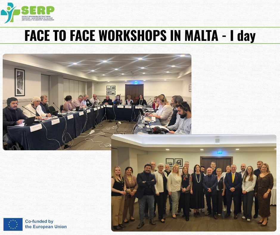 Malta, 16 decembrie 2025. Proiectul SERP ”Procese de restructurare responsabile social – consolidarea rolului și a capacității organizațiilor lucrătorilor” și-a lansat oficial workshop-ul cu prezență fizică în Malta, eveniment moderat de un expert din partea General Workers’ Union (GWU).